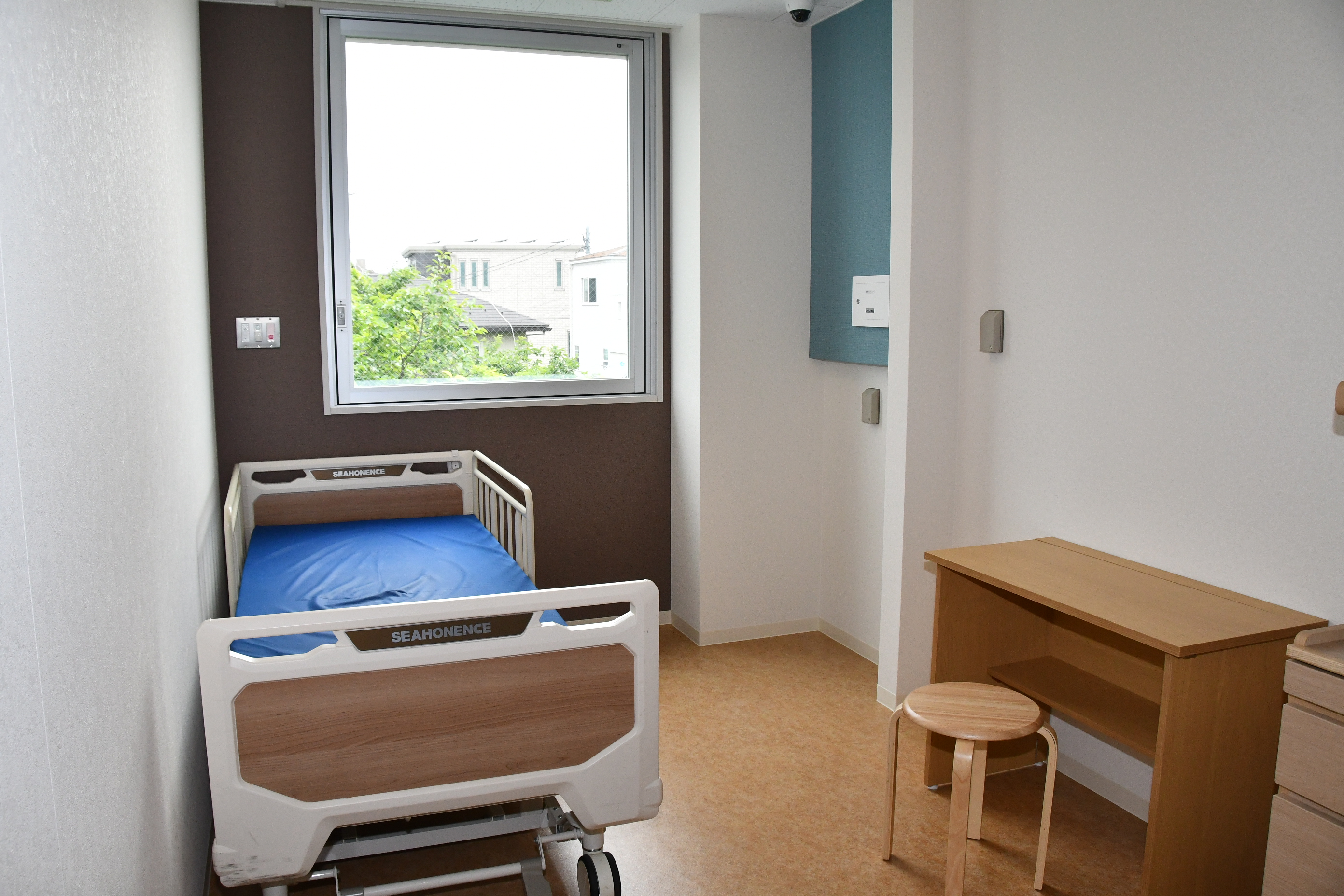 「病院の建て替えについては、建物の老朽化が進んでいたこともありますが、当院の外観や病棟は旧来の精神科病院のもつイメージがありました。新病院では落ち着きがありながらも、明るい設計とすることにより、精神科病院のイメージを払拭することを目指しています。さらに、精神科病院としての機能を強化し、立地のよさを活かした『都市型精神科病院』として若年層から高齢層まで幅広い精神疾患に対応していくことを考えています。入院環境については、これまで当院は畳部屋の多床室が多く、コロナ禍のとき感染症対策としてベッド室に切り替えたものの、まだ畳部屋が残っていたため、すべてベッド室として安らぎを感じられる療養環境をつくっています」(佐々木事務部長)。