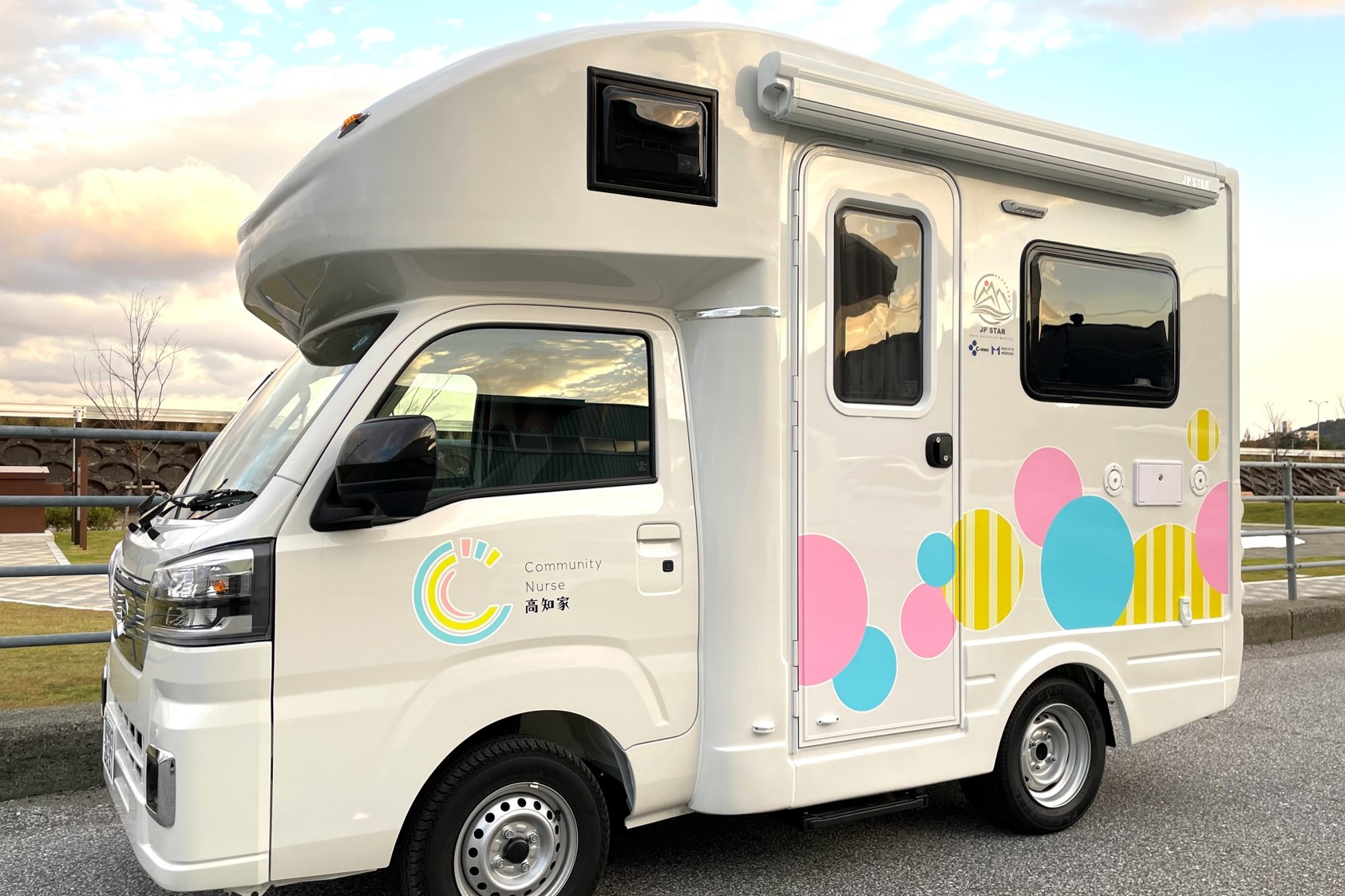 | ▲ コミュ二ティナース活動では、看護師や理学療法士などが車両で、中山間地域の集会所や介護予防体操の会場等に出向き、健康相談などを行う「移動保健室」に取り組んでいる |
