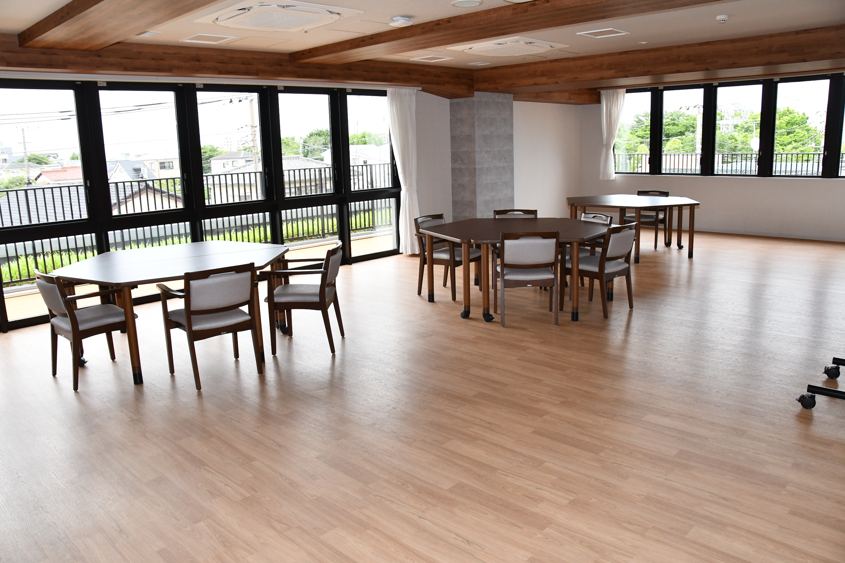 ▲ 屋上庭園では、見晴らしのよい環境のなかで患者がリハビリに取り組むことができる | ▲ 広々した空間のデイケアのスペース |
