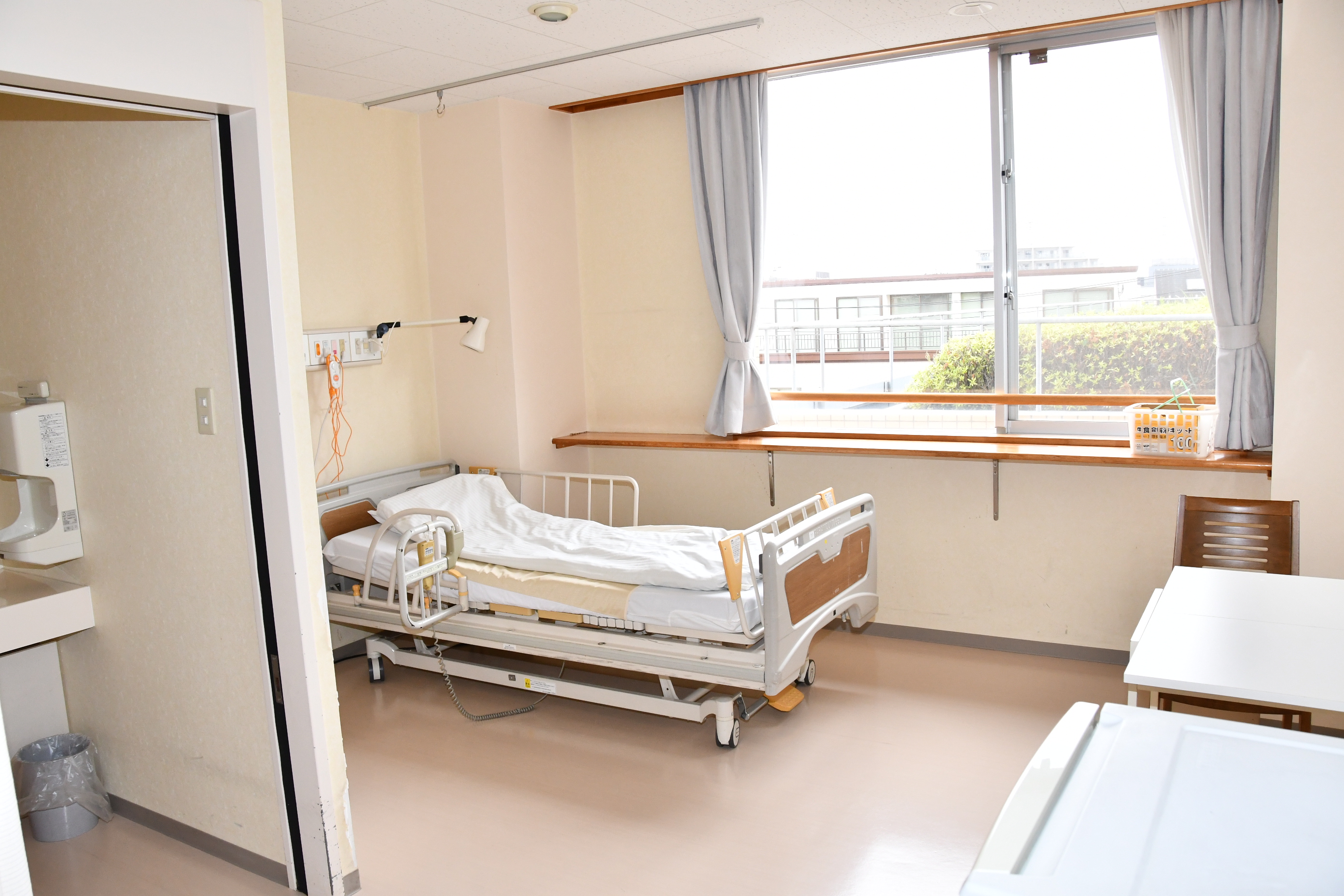 ▲ 緩和ケア病棟の病室とデイルーム。穏やかに過ごせる療養環境を提供している |