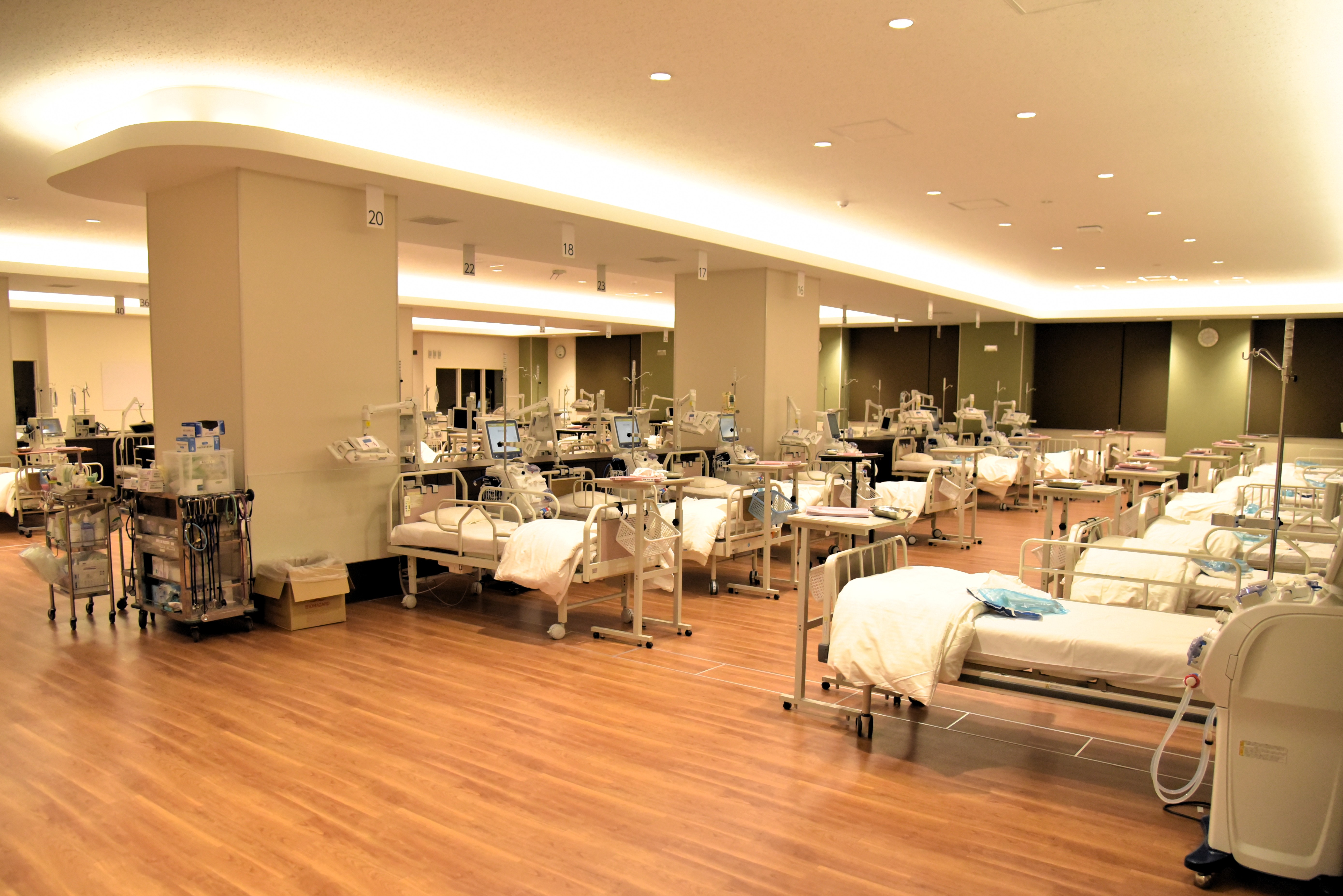 | ▲ 透析センターは、同時透析最大44 人まで受け入れが可能で、夜間透析にも対応 |